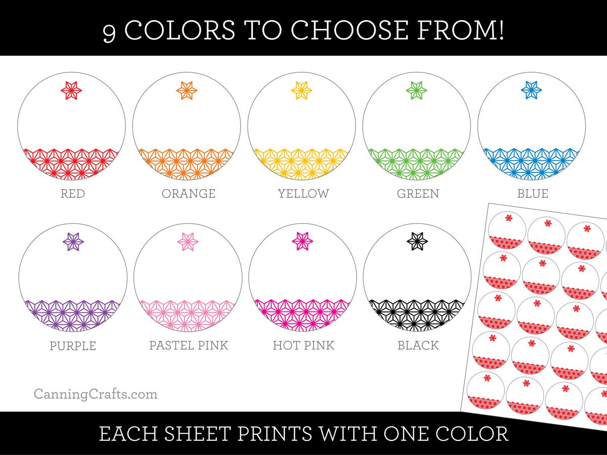 • 2 inch (20 labels per sheet) for regular mouth lids